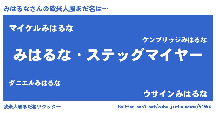 | 男性向けラノベタイトル風あだ名 | 『うちのみはるなが世界を掌握している!』 |