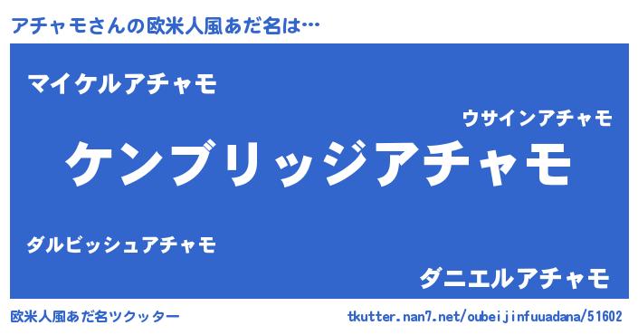 | ヒーロー風カッコイイあだ名 | 『サイバー戦士アチャモ』『黄金騎士アチ』 |