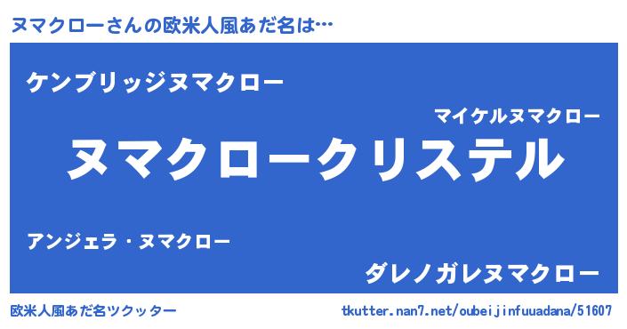 | ファンタジー風あだ名 | 『エターナルヌマクローー』『ゼヌマトゥ』 |