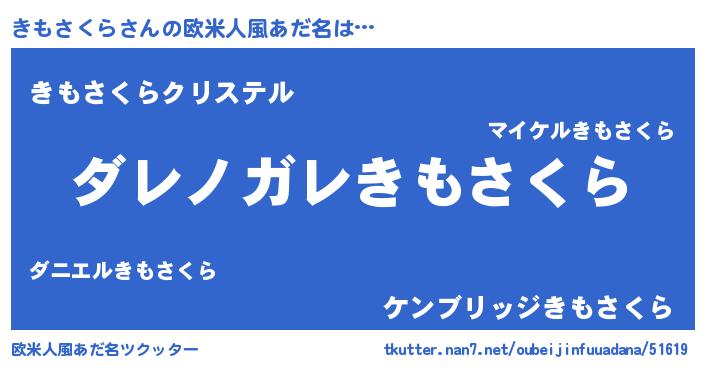 | 意味不明あだ名 | 『住所不定無職きもさくら(53歳)』 |
