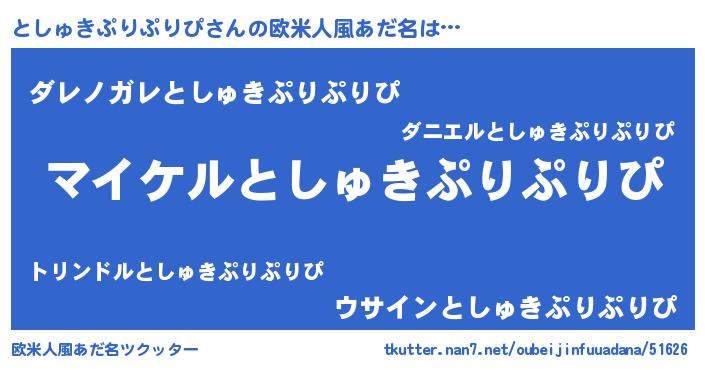 | 男性向けラノベタイトル風あだ名 | 『としゅきぷりぷりぴの憂鬱』 |