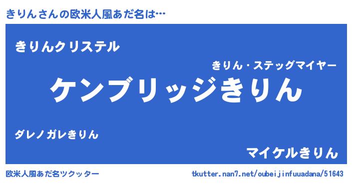 | ヘコむあだ名 | 『牛乳』『きりにー』『きりん(笑)』 |