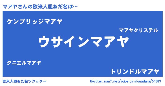 | 男性向けラノベタイトル風あだ名 | 『マアヤの嫁は女の子じゃないと思った?』 |