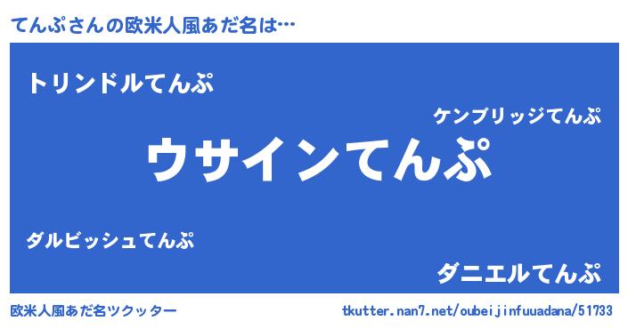 | 男性向けラノベタイトル風あだ名 | 『てんぷの嫁は女の子じゃないと思った?』 |