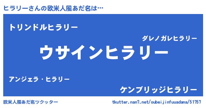 | 男性向けラノベタイトル風あだ名 | 『ダンジョンにヒラリーを求めるのは間違っているだろうか』 |