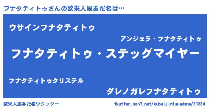 | 男性向けラノベタイトル風あだ名 | 『緋弾のフナタティトゥ』 |