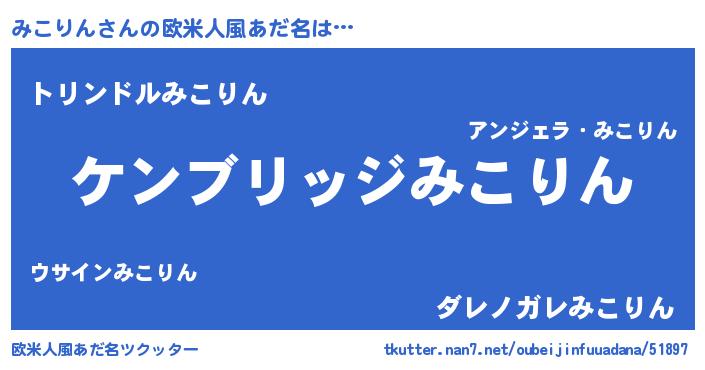 | 意味不明あだ名 | 『自称みこりん』『めかぶ科みこりん属』 |