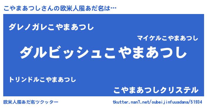 | 可愛いあだ名 | 『こやまあつしママ』『ぽよこや』 |