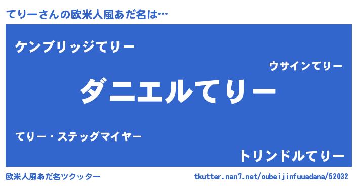 | 女子向けラノベタイトル風あだ名 | 『死神てりーの再婚』『てりー様がみてる』 |
