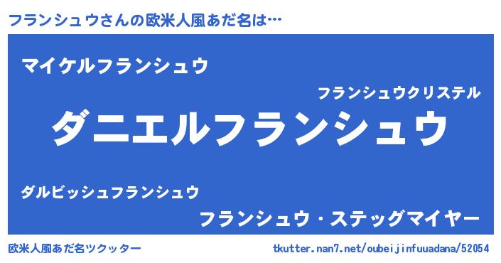 | 男性向けラノベタイトル風あだ名 | 『おまえをオタクにしてやるから、俺をフランシュウにしてくれ! 』 |