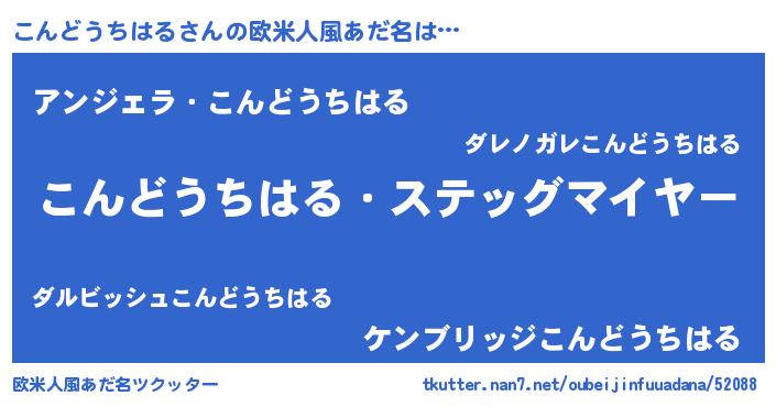 | 男性向けラノベタイトル風あだ名 | 『うちのこんどうちはるが世界を掌握している!』 |