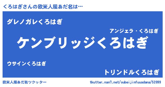 | 男性向けラノベタイトル風あだ名 | 『Re:くろはぎから始める異世界生活』 |