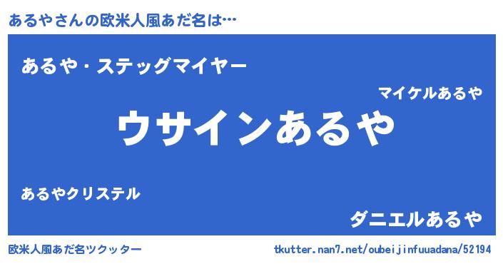| 男性向けラノベタイトル風あだ名 | 『あるやの嫁は女の子じゃないと思った?』 |