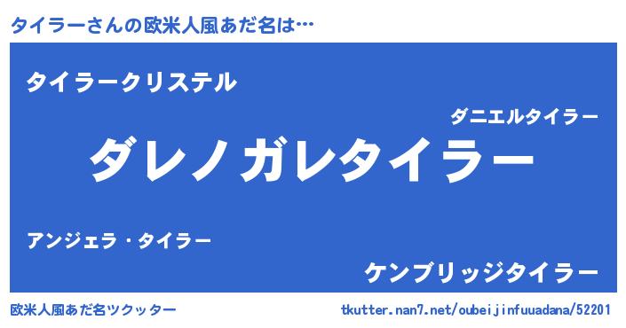 | 意味不明あだ名 | 『住所不定無職タイラー(93歳)』 |