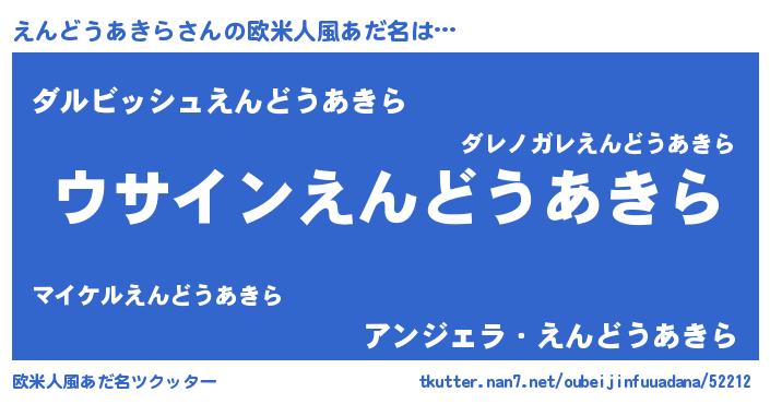 | ヘコむあだ名 | 『えんぷりん』『えんどうあきら(遠い目)』 |