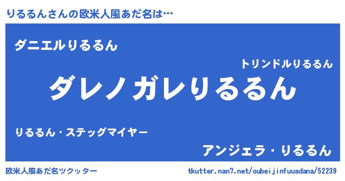 | 男性向けラノベタイトル風あだ名 | 『魔弾の王とりるるん』 |