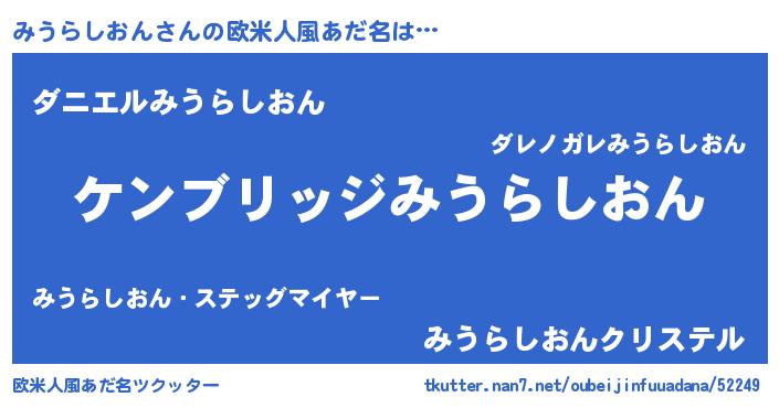 | 男性向けラノベタイトル風あだ名 | 『Re:みうらしおんから始める異世界生活』 |