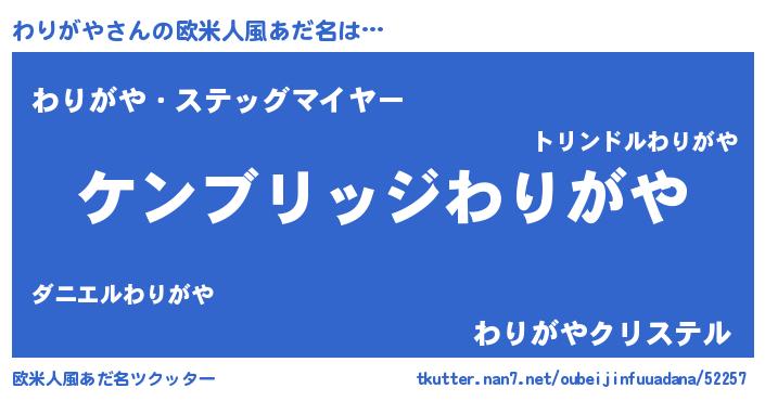 | 意味不明あだ名 | 『自称わりがや』『わりがやフォーエバー』 |