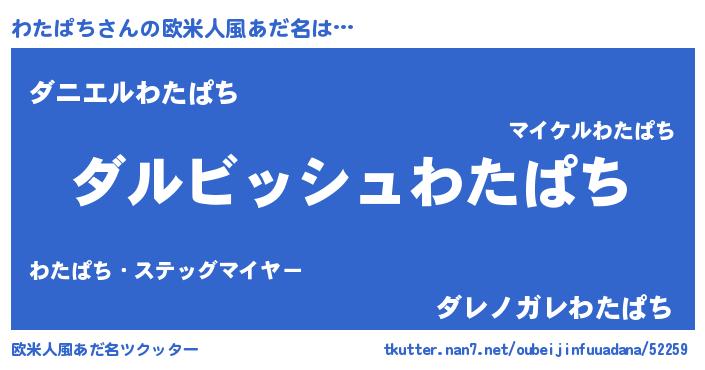 | 意味不明あだ名 | 『永久保存わたぱち』『ペロリンわたぱち』 |