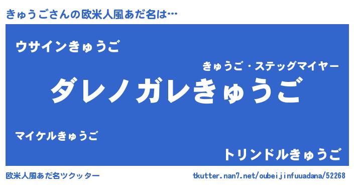| 男性向けラノベタイトル風あだ名 | 『魔弾の王ときゅうご』『きゅうごの憂鬱』 |