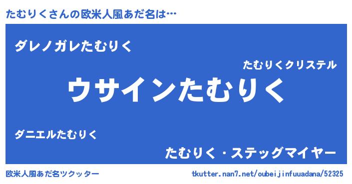| 男性向けラノベタイトル風あだ名 | 『たむりくの嫁は女の子じゃないと思った?』 |