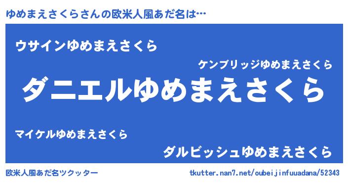 | ポケモン風あだ名 | 『ユックウザ』『ヒユメマエサクラ』 |