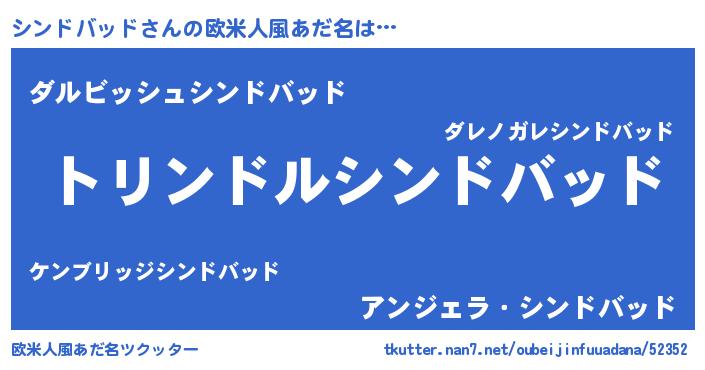 | 男性向けラノベタイトル風あだ名 | 『シンドバッド~年齢イコール彼女いない歴の魔法使い~』 |
