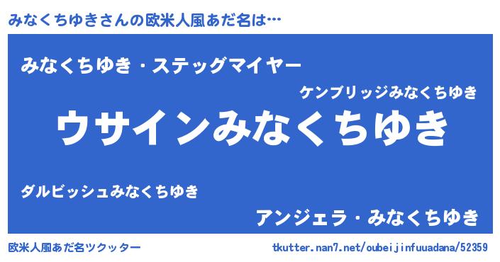 | 男性向けラノベタイトル風あだ名 | 『みなくちゆきの嫁は女の子じゃないと思った?』 |