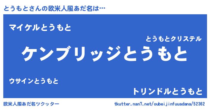 | 男性向けラノベタイトル風あだ名 | 『Re:とうもとから始める異世界生活』 |