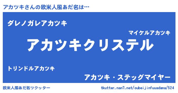 | 意味不明あだ名 | 『アカツキフォーエバー』 |