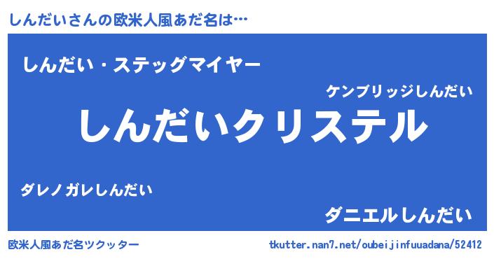 | 意味不明あだ名 | 『しんだいフォーエバー』『自称しんだい』 |