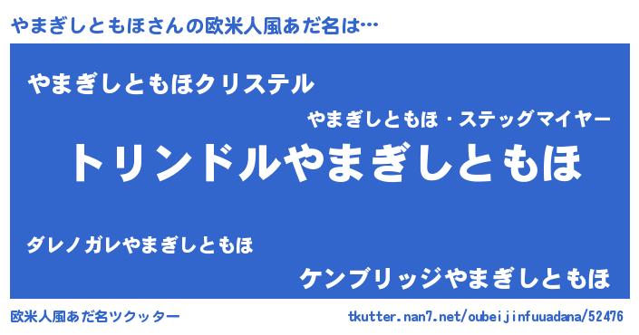 | 男性向けラノベタイトル風あだ名 | 『ヤマギシトモホスレイヤー』 |