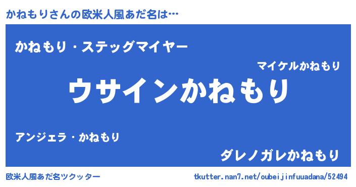| 男性向けラノベタイトル風あだ名 | 『かねもりの嫁は女の子じゃないと思った?』 |