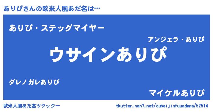 | 男性向けラノベタイトル風あだ名 | 『ありぴの嫁は女の子じゃないと思った?』 |