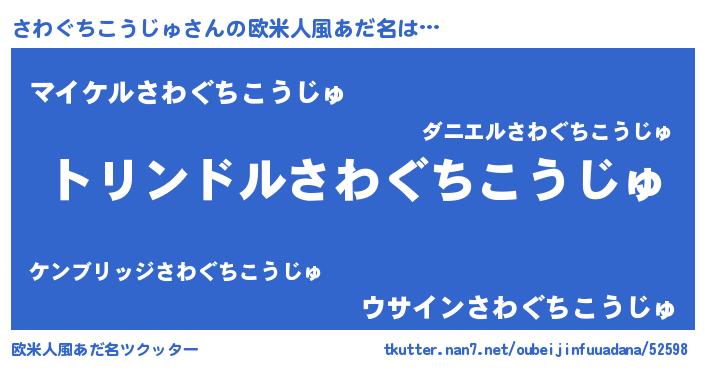 | 男性向けラノベタイトル風あだ名 | 『転生したらさわぐちこうじゅだった件』 |