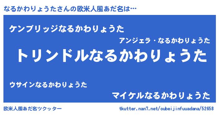 | 男性向けラノベタイトル風あだ名 | 『ナルカワリョウタスレイヤー』 |