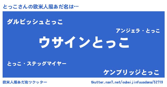 | 女子向けラノベタイトル風あだ名 | 『とっこの卵を拾いまして』 |