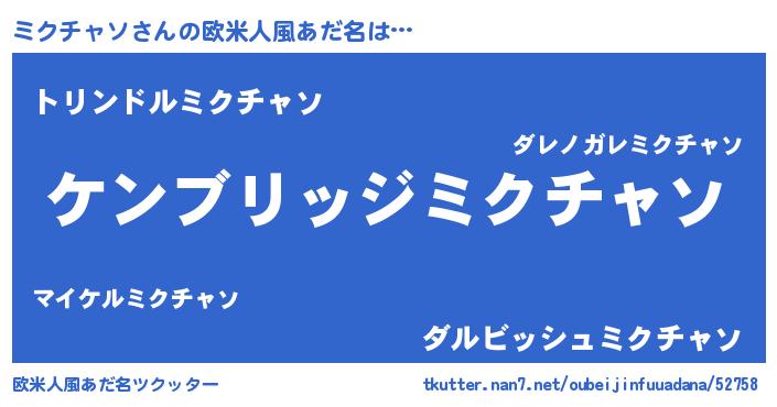 | 意味不明あだ名 | 『自称ミクチャソ』『永久保存ミクチャソ』 |