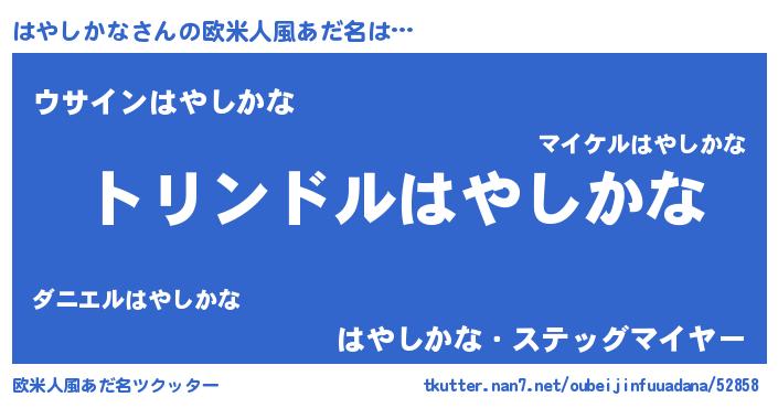 | 男性向けラノベタイトル風あだ名 | 『ハヤシカナスレイヤー』 |