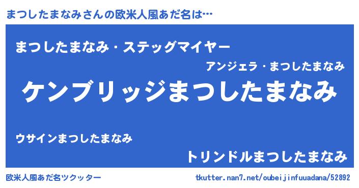 | 意味不明あだ名 | 『自称まつしたまなみ』 |