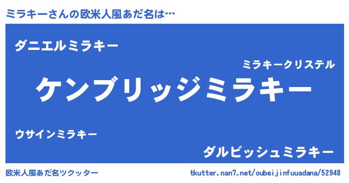 | 男性向けラノベタイトル風あだ名 | 『Re:ミラキーから始める異世界生活』 |