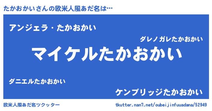 | 男性向けラノベタイトル風あだ名 | 『たかおかいの憂鬱』 |