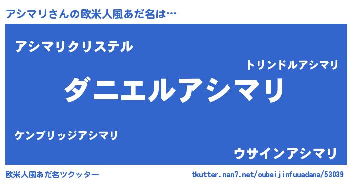 | 女子向けラノベタイトル風あだ名 | 『アシマリ恋絵巻』『アシマリの婚約者』 |