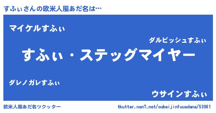 | ヘコむあだ名 | 『すふもー』『すふ太郎』『酢こんぶ』 |