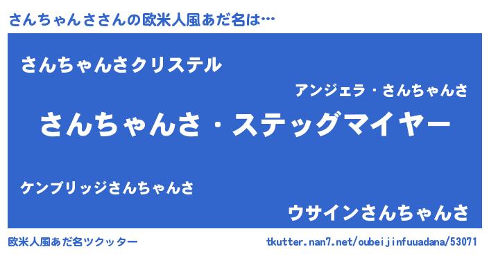| 男性向けラノベタイトル風あだ名 | 『緋弾のサンチャンサ』 |