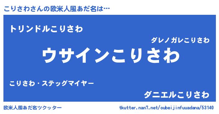 | 男性向けラノベタイトル風あだ名 | 『こりさわの嫁は女の子じゃないと思った?』 |