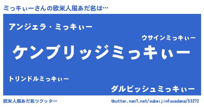 | 女子向けラノベタイトル風あだ名 | 『ミっキぃーなんてお断りですっ。』 |