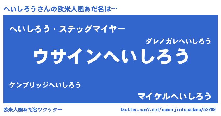 | 男性向けラノベタイトル風あだ名 | 『へいしろうの嫁は女の子じゃないと思った?』 |
