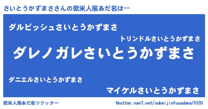 | 男性向けラノベタイトル風あだ名 | 『この素晴らしい世界にさいとうかずまさを!』 |
