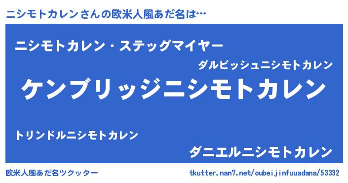 | 女子向けラノベタイトル風あだ名 | 『ニシモトカレンなんてお断りですっ。』 |
